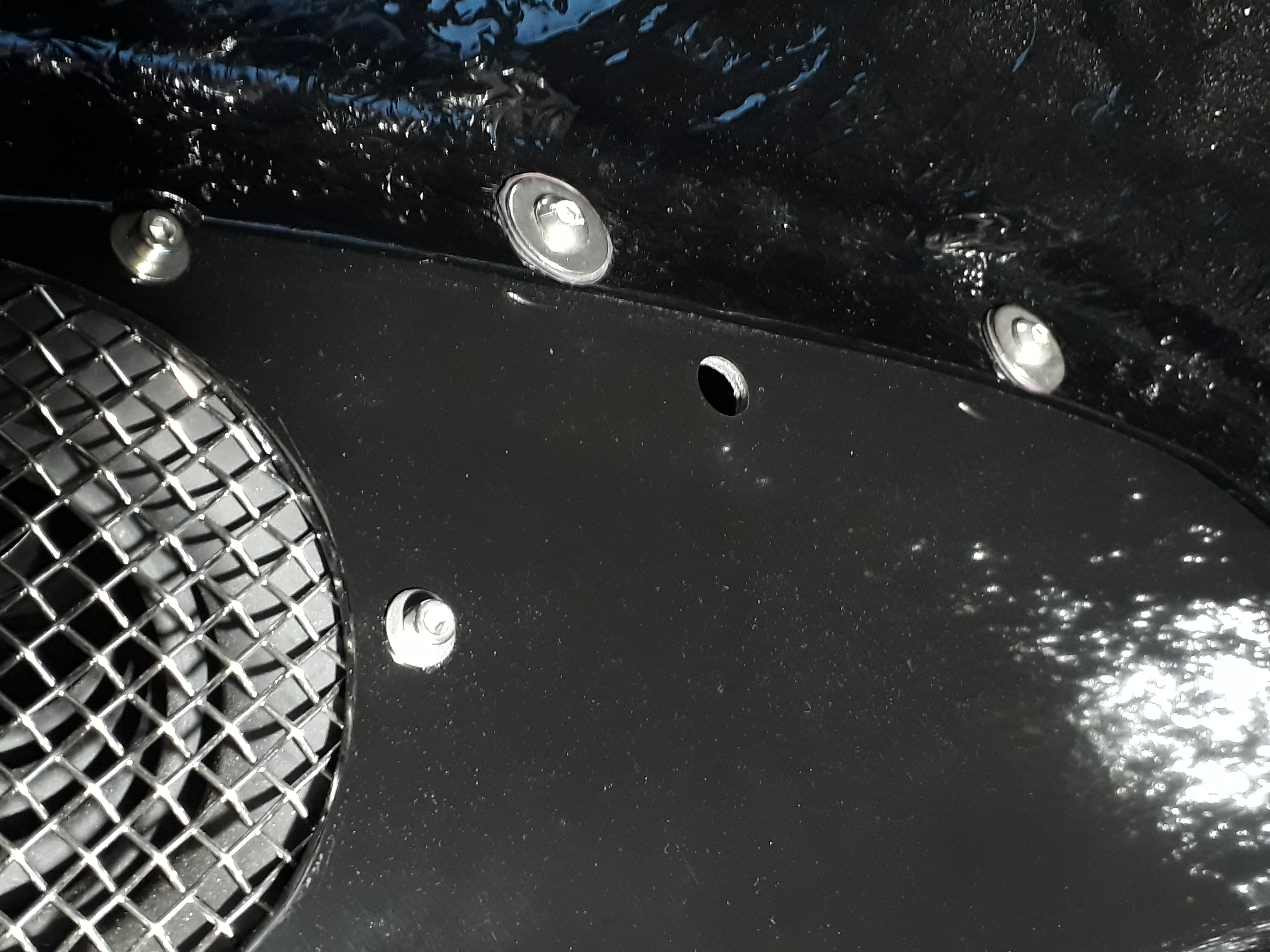 In de handleiding wordt een gaatje geboord door de flens van het spatbord. Ik ga hier liever net onder zitten. Dan kan ik hier nog een mooi rubbertje in friemelen. Zoiets: